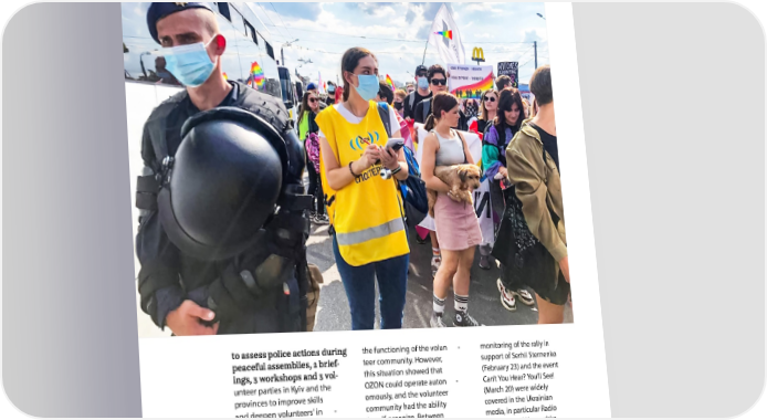 WWW.CCL.ORG.UA the functioning of the volun - monitoring of the rally in - teer community. However, support of Serhii Sternenko - this situation showed that (February 23) and the event unteer parties in Kyiv and the OZON could operate auton - Can’t You Hear? You’ll See! provinces to improve skills omously, and the volunteer (March 20) were widely and deepen volunteers’ in - community had the ability covered in the Ukrainian volvement in OZON activities. to self-organize. Between media, in particular Radio January and July, it monitored Svoboda and Hromadske. OZON Public Monitoring The OZON Public Monitor - - ing Group continues to grow assessing police actions and and recruit new members. coordination and systematic work on developing the group recommendations. Among December, we revived the other things, reports on the process of recruiting new