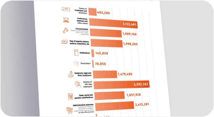 WWW.CCL.ORG.UA EXPENSES (ALL AMOUNTS ARE INDICATED IN UAH) Travels of 483,289 volunteers other events 3,122,491 (websites, social media, mass 1,989,160 media, video, design, visualization 1,998,200 145,020 Translations 78,056 1,479,496 Salaries of full-time 3,592,303 employees 1,851,928 (including rent, repair and 2,415,201 maintenance of premises, communications, bank, stationery 69,000 Other Costs 159,049