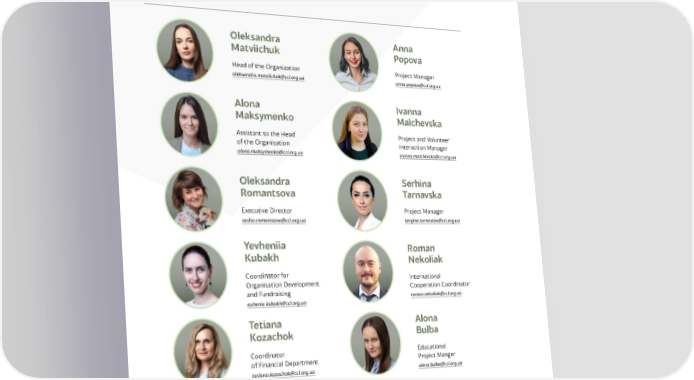 ANNUAL REPORT 2023 5. OUR TEAM 5. OUR TEAM Oleksandra Anna Matviichuk Popova Head of the Organization Project Manager oleksandra.matviichuk@ccl.org.ua anna.popova@ccl.org.ua Alona Ivanna Maksymenko Malchevska Assistant to the Head Project and Volunteer of the Organisation Interaction Manager alona.maksymenko@ccl.org.ua ivanna.malchevska@ccl.org.ua Oleksandra Serhina Romantsova Tarnavska Executive Director Project Manager sasha.romantsova@ccl.org.ua sergina.tarnavska@ccl.org.ua Yevheniia Roman Kubakh Nekoliak Coordinator for International Organisation Development Cooperation Coordinator and Fundraising roman.nekoliak@ccl.org.ua euhenia.kubakh@ccl.org.ua Tetiana Alona Kozachok Bulba Coordinator Educational of Financial Department Project Manger tatiana.kozachok@ccl.org.ua alena.bulba@ccl.org.ua Liubov Khrystyna Honcharova Buchkovska Chief Accountant Communication lyubov.honcharova@ccl.org.ua Coordinator khrystyna.buchkovska@ccl.org.ua Nataliia Mariia Yashchuk Khaliuk Project Management Assistant to the Coordinator 45 Executive Director nataliia.yashchuk@ccl.org.ua maria.khaliuk@ccl.org.ua